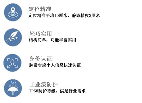 電子身份腕帶是非限制性人員定位采集設(shè)備,能將佩戴 人員的位置信息實(shí)時(shí)上傳。 記錄人員活動(dòng)軌跡,地理位置,簡化管理流程,輕松實(shí) 現(xiàn)可視化查詢,并進(jìn)行主動(dòng)預(yù)警式的全方位管理。