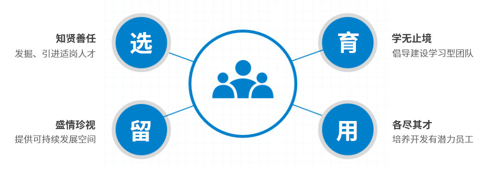 公司的人才管理原則是:知賢善任、學(xué)無(wú)止境、盛情珍視、各盡其才。公司全力幫助每位員工迅速成長(zhǎng),深入挖掘每位員工的潛力,最大程度地發(fā)揮其積極性與主動(dòng)性;同時(shí),重視每位員工個(gè)性與多樣性的有機(jī)結(jié)合,堅(jiān)持盡其才,才盡其用,各盡所能,盡智盡力,幫助每一位員工取得工作上的成功。